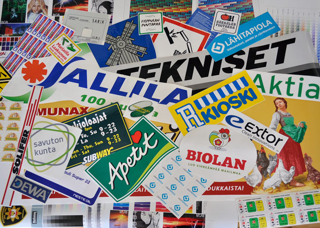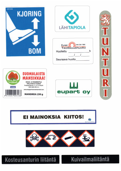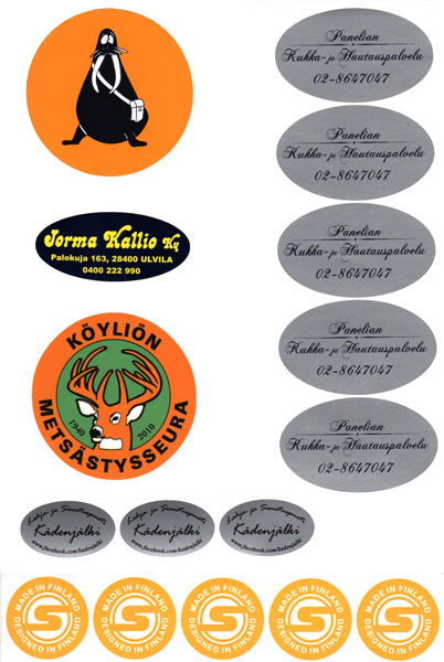 Alla valmistamiamme tarroja, klikkaa kuva suuremmaksi